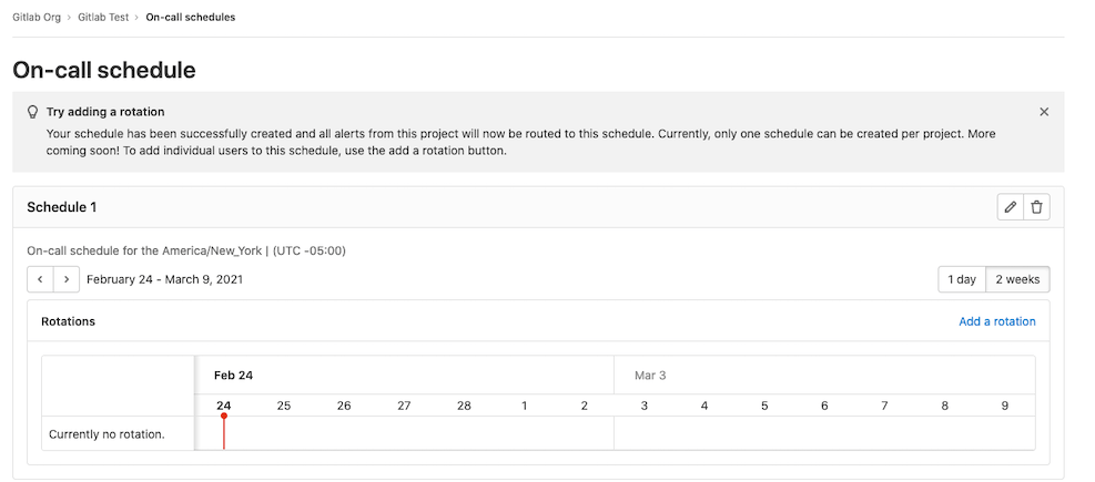 If you change the schedule's time zone, GitLab automatically updates the rotation's restricted time interval (if one is set) to the corresponding times in the new time zone.