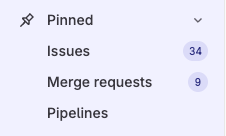 At the top of the left sidebar are several shortcuts. Use these shortcuts to show and hide the left sidebar, create new items, search, and view your profile. You can also view your list of issues, merge requests, and to-do items.